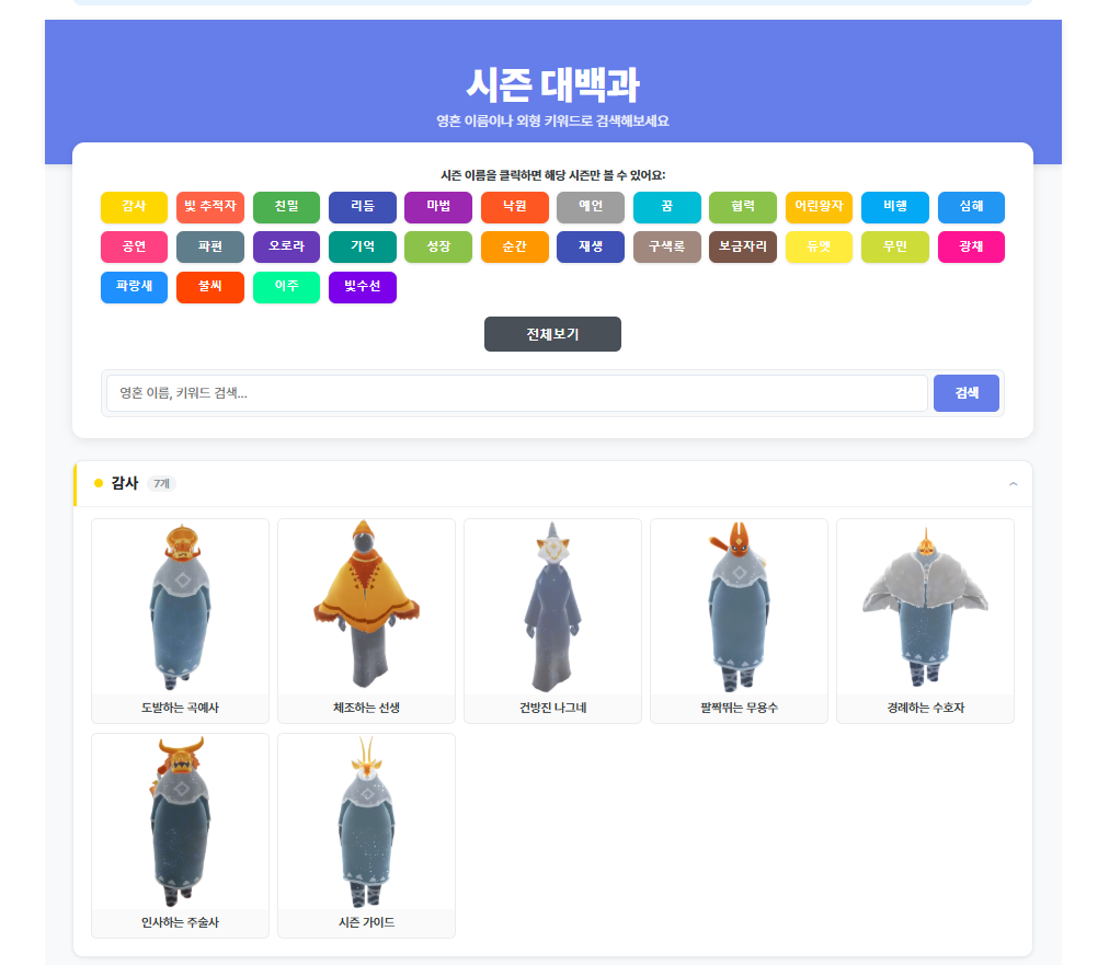시즌 대백과 오픈 — 영혼을 키워드로 검색해보세요!